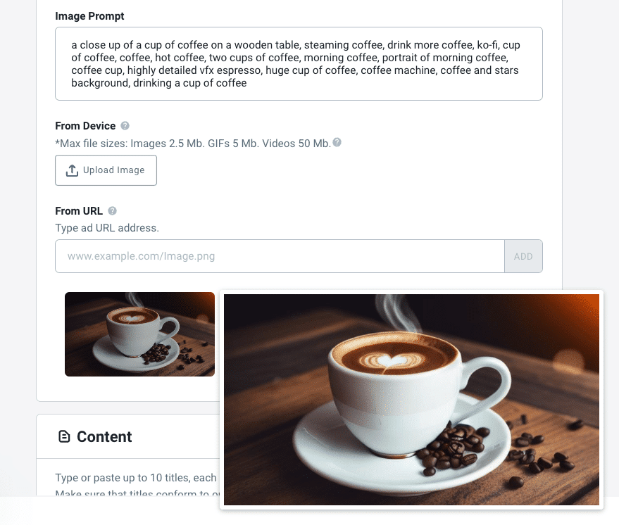 Les annonceurs peuvent également générer facilement des images à partir d’un simple texte ou d’une autre image, comme ceci :